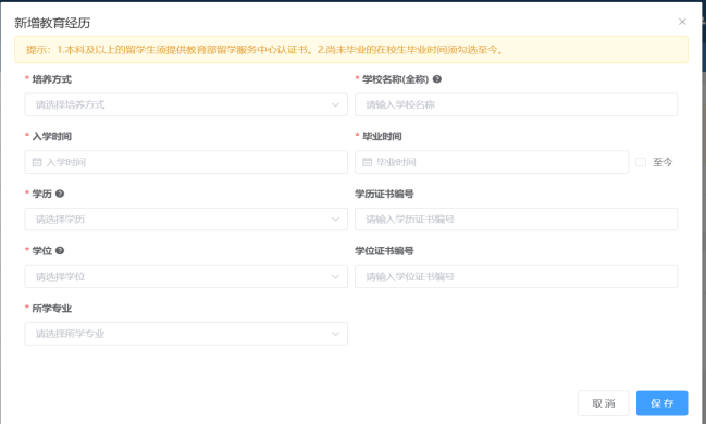 信息采集人员教育经历信息由全国统一平台与中国高等教育学生信息网自动比对。比对不通过的个人需上传以下材料:
