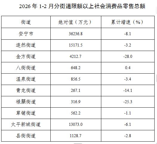 安宁市2026年1-2月社会消费品零售及行业发展情况